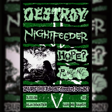 March 22d, Black Water Portland, with Nightfeeder, HOPE?, Pungence